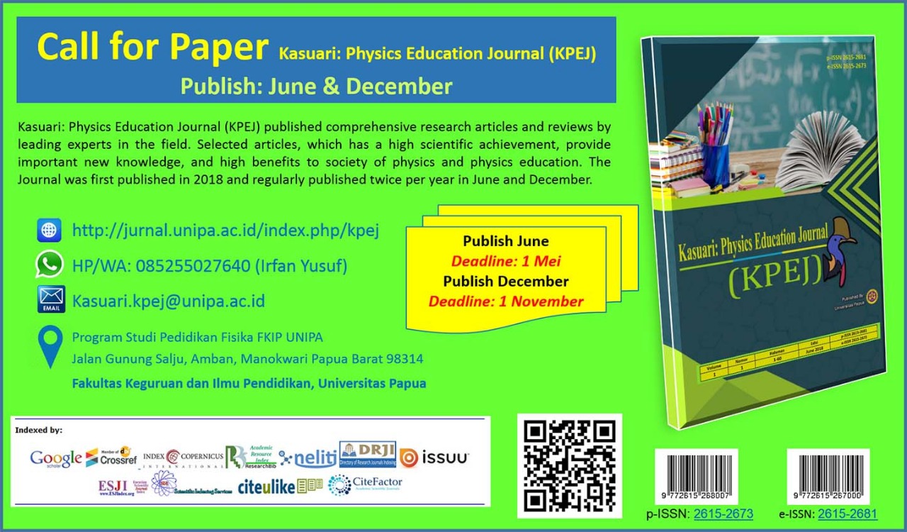 Call for Paper Kasuari: Physics Education Journal (KPEJ)
