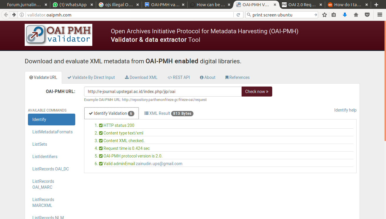 Saya juga Dispal OAI ketika dicek seperti ini gambar berikut: