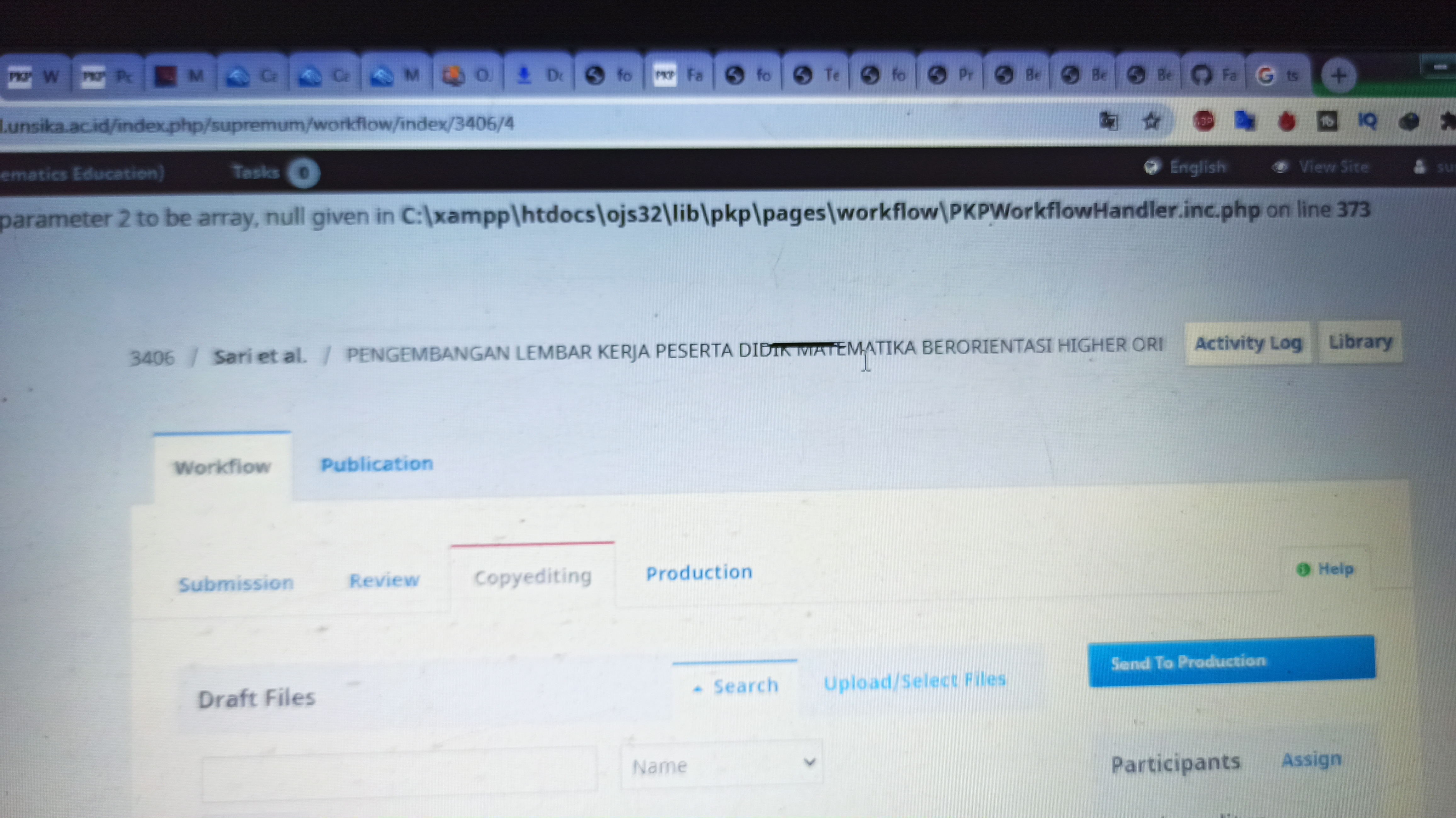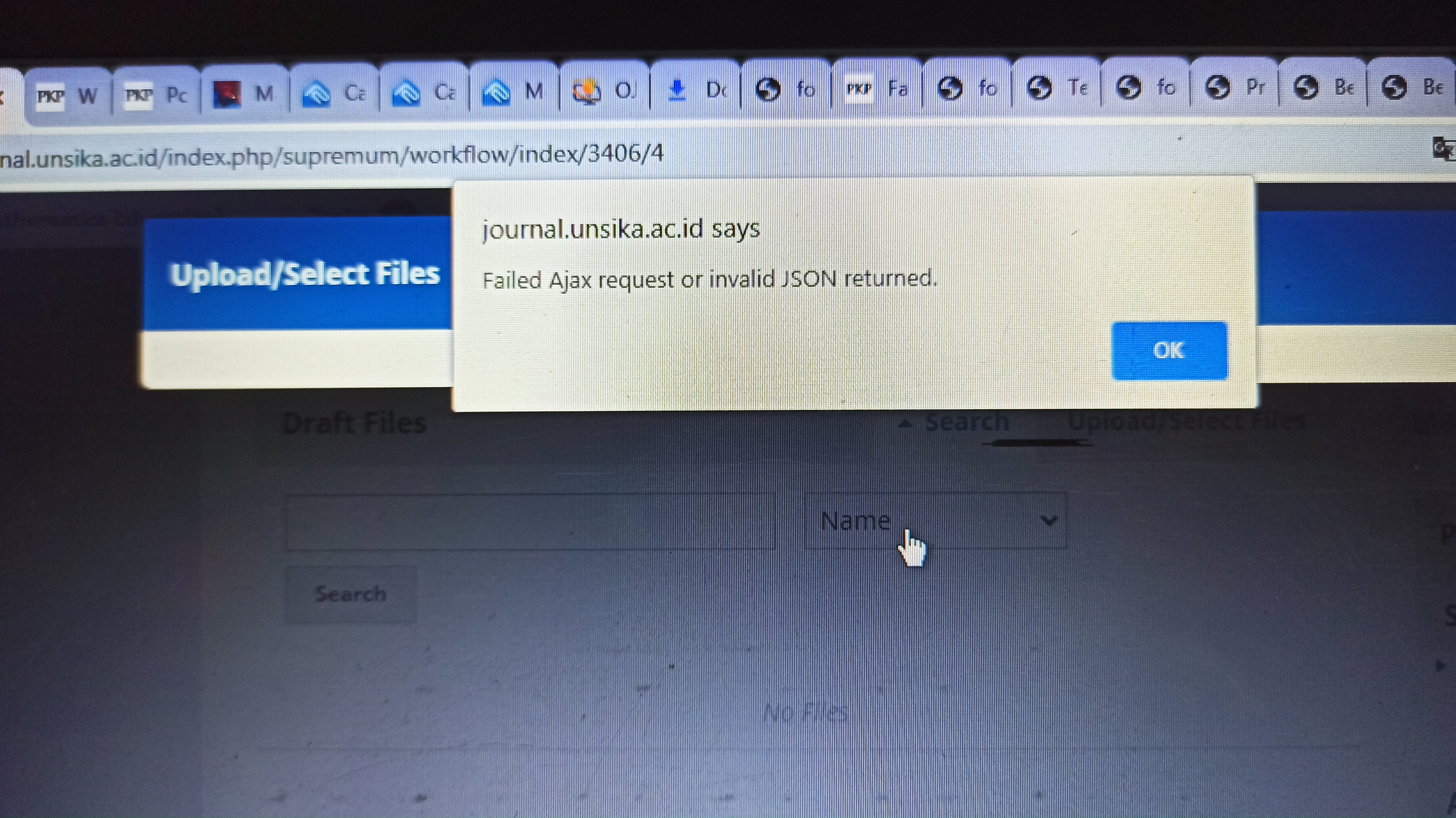 Mohon izin bertanya, saya pengguna baru ojs 3. Di bagian copy editing saya tidak bisa upload file, bacaannya failed ajax request or invalid JSON. Awalnya saya mengutak atik theme pada website setting. Mohon bantuannya ya.