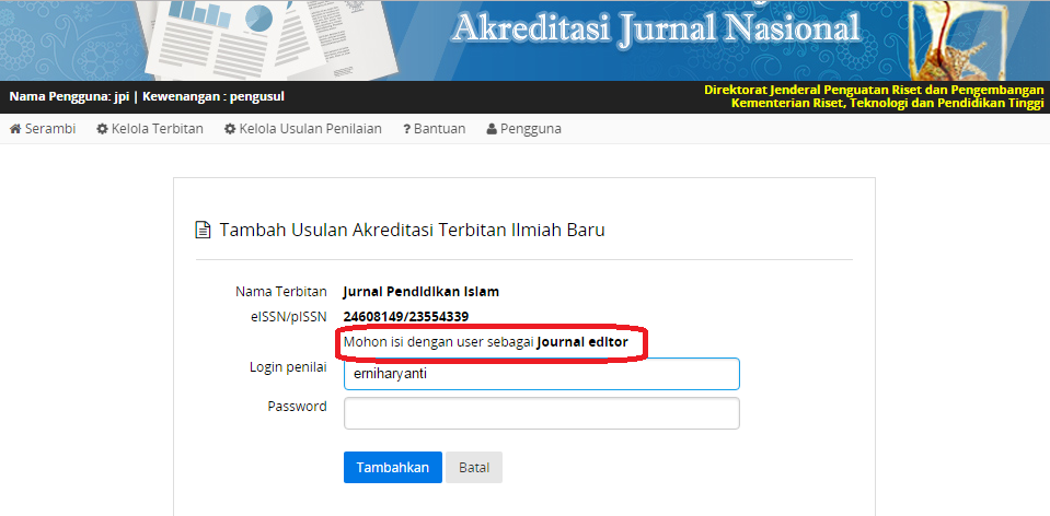 Jika username dan password yang kita berikan hanya sebagai Reviewer/ author saja, maka sesungguhnya ini akan menghambat proses penilaian akreditasi Jurnal kita.