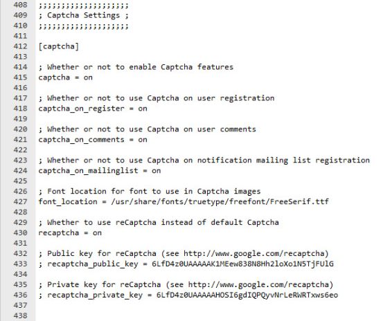 Trus untuk menangkal agar tidak ada lagi user spam yg masuk saya coba setting recaptcha di config.inc.php baris 433 dan 436. Saya sudah isi isi sesuai create captcha di google. tapi malah belum aktif.